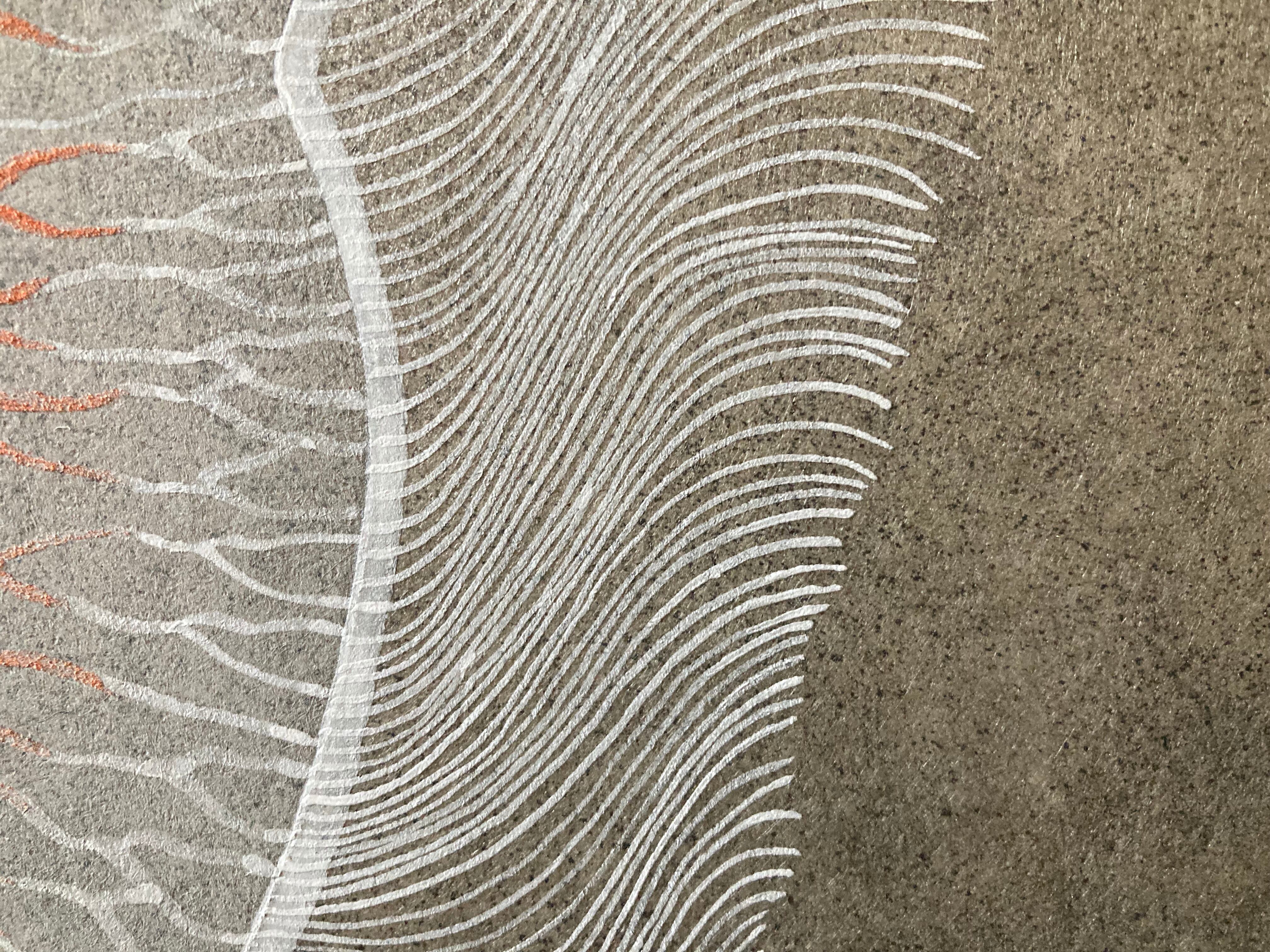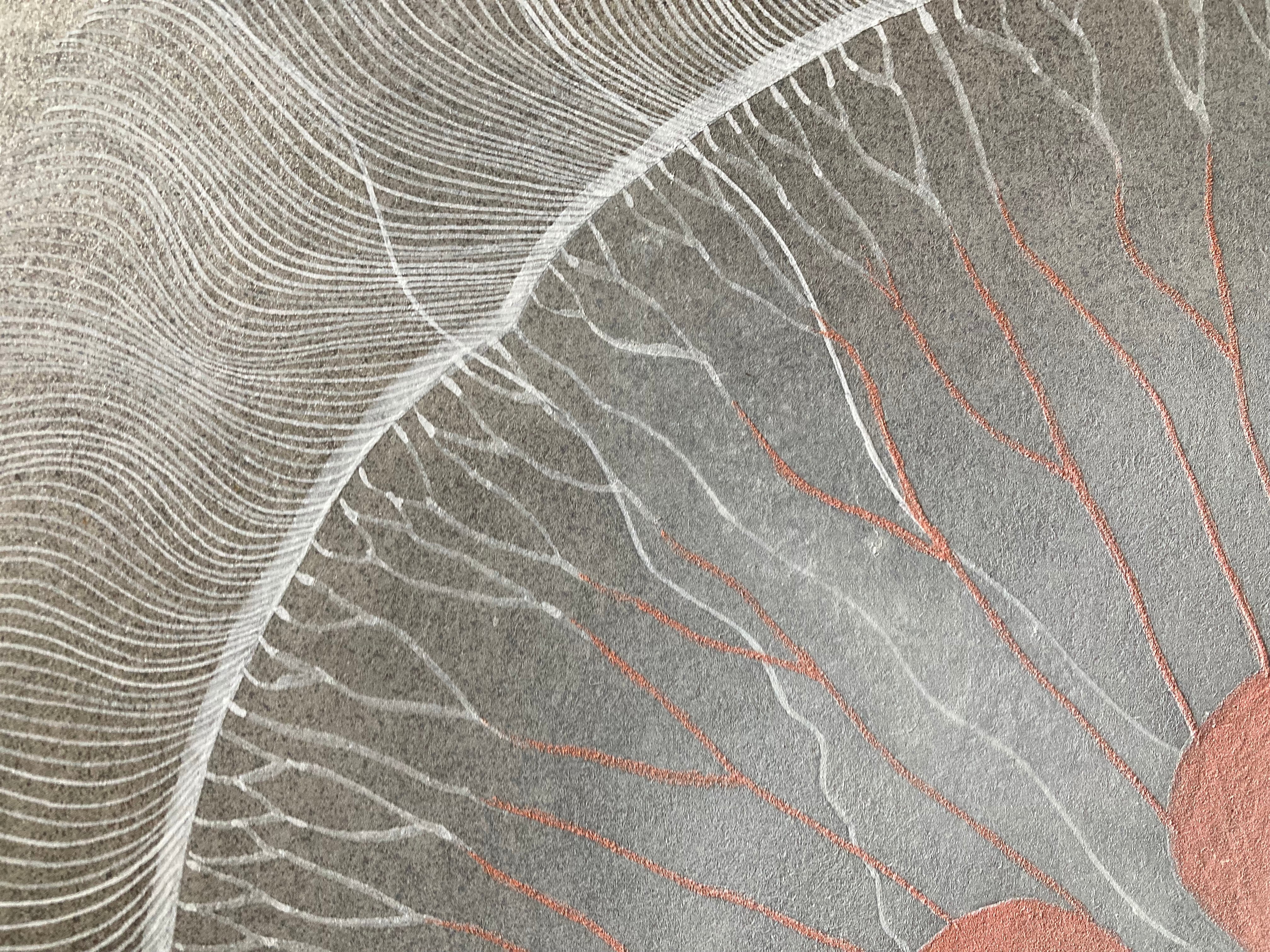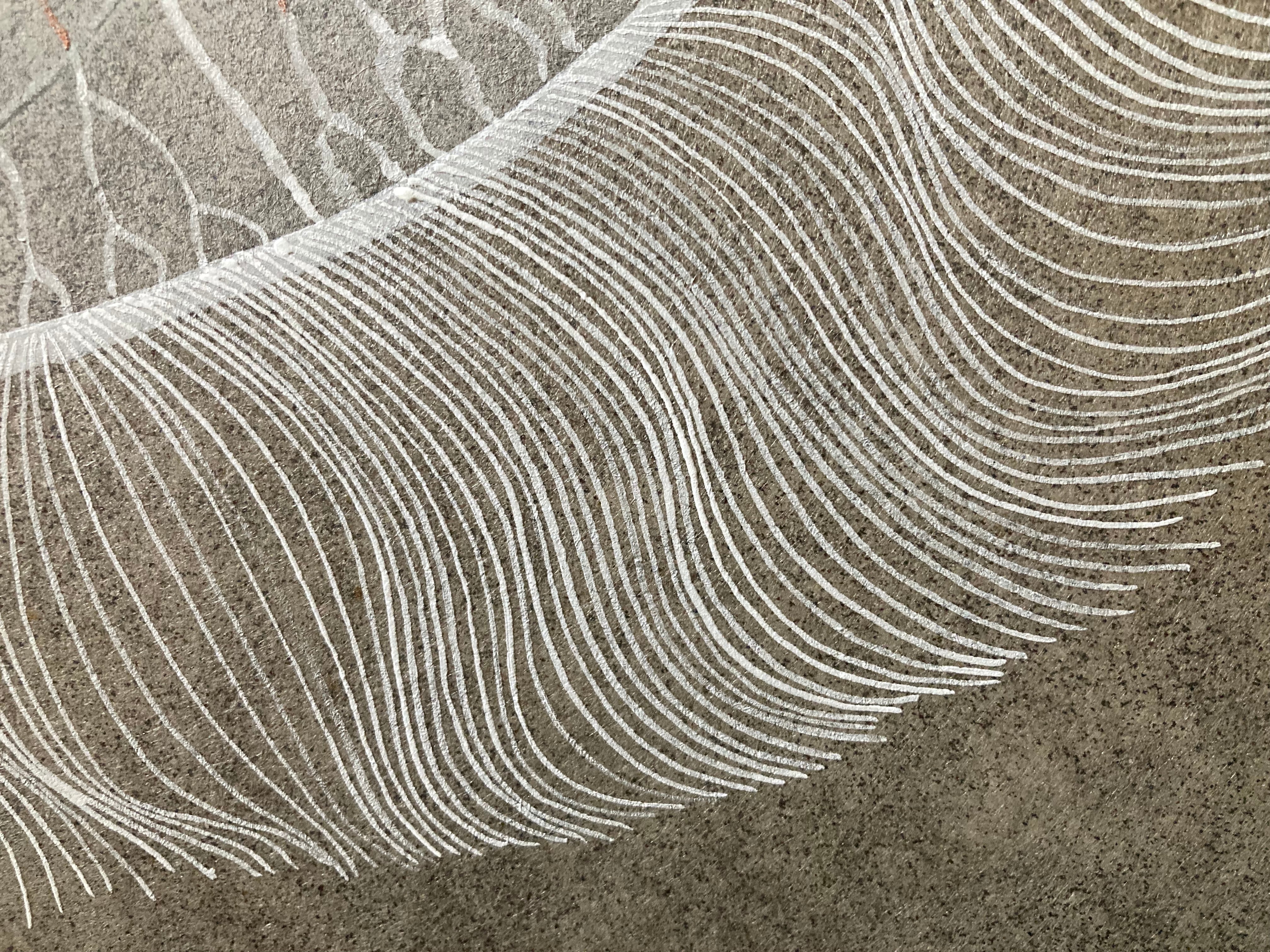 天然岩絵具や粉砕した黒箔(銀箔)を使用することで、