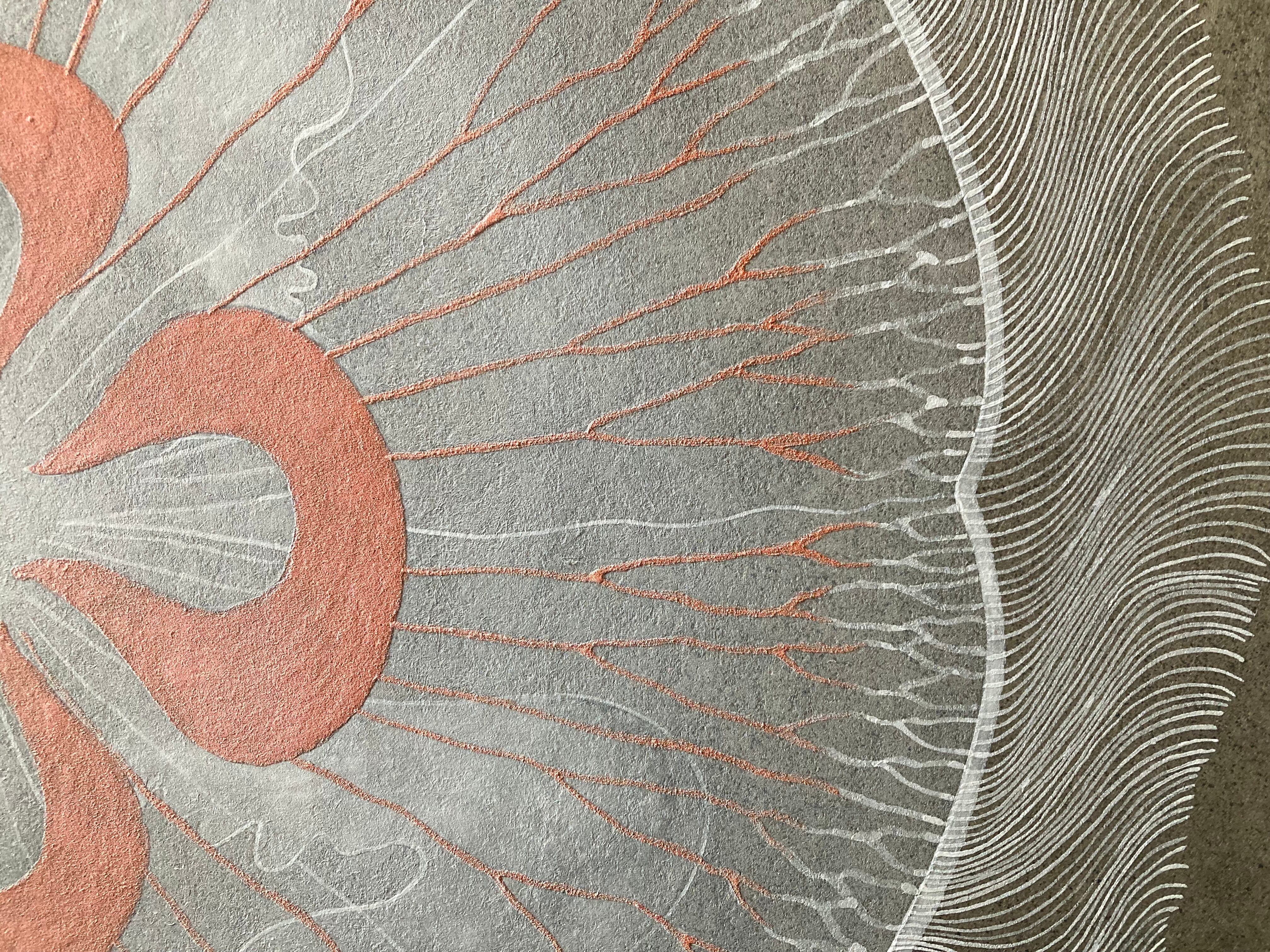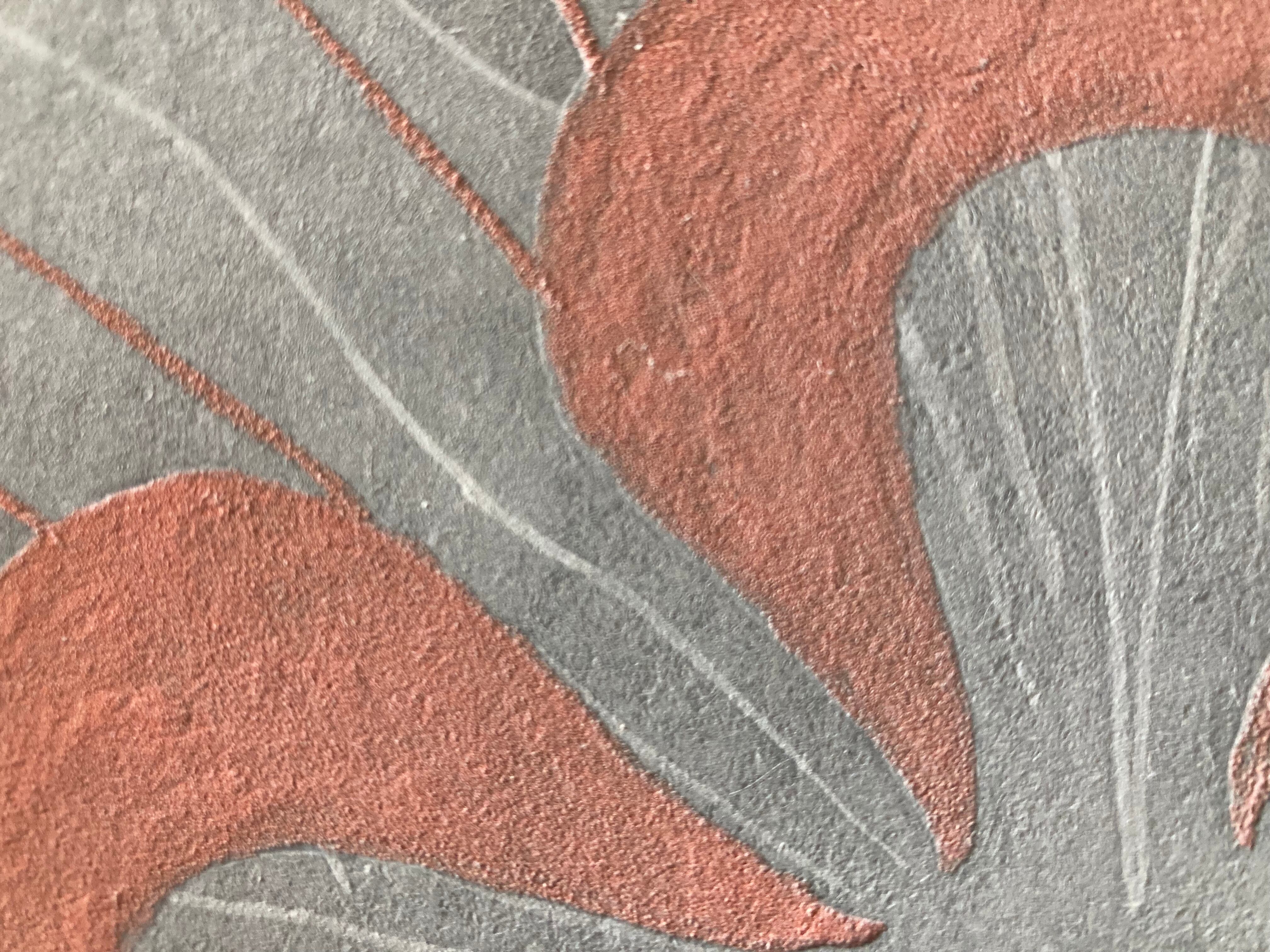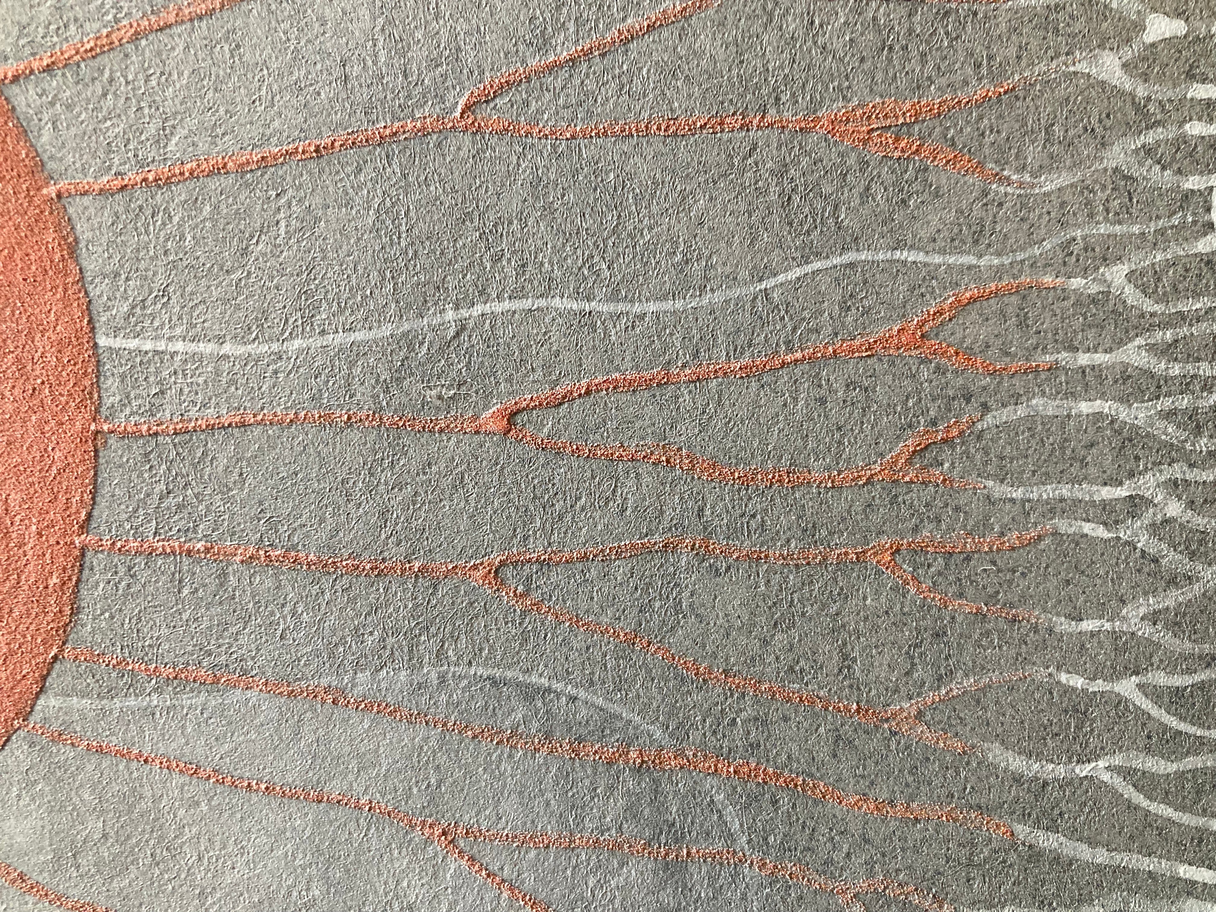 天然岩絵具や粉砕した黒箔(銀箔)を使用することで、